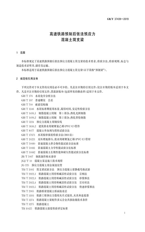 GB/T37439-2019高速鐵路預制后張法預應力混凝土簡支梁新執(zhí)行標準